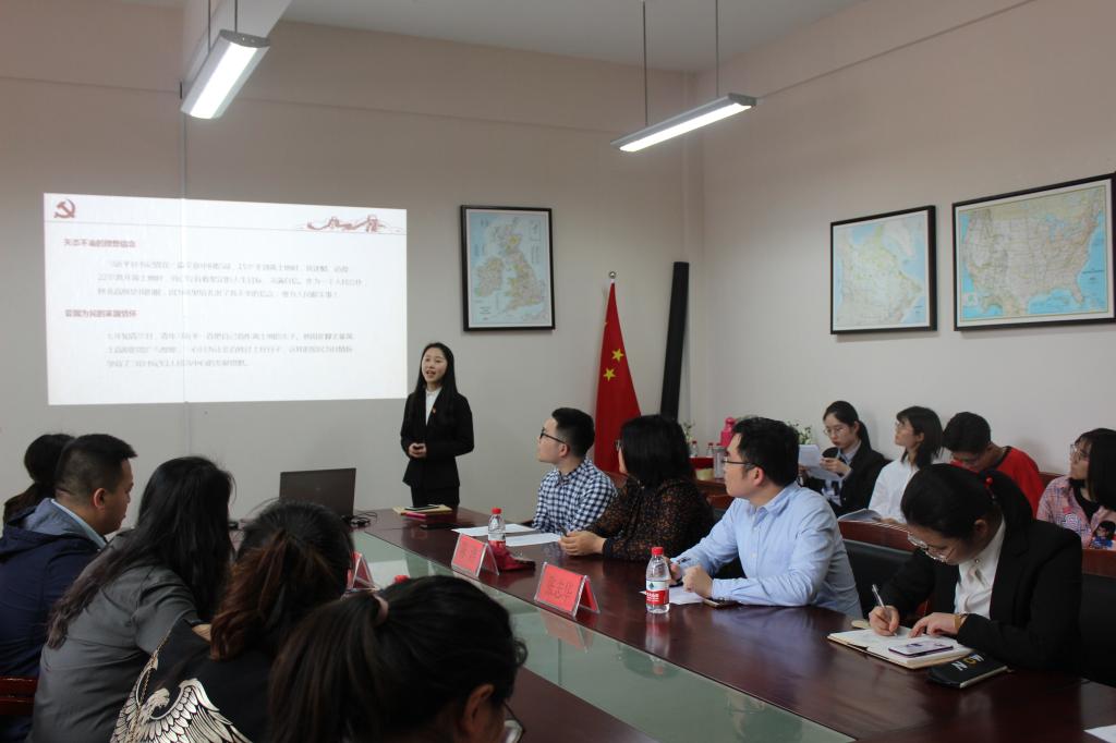 比赛中,选手们围绕“弘扬五四精神,共创青春辉煌”主题纷纷以不同的切入点阐述她们对主题的理解。员工党员袁雨歆围绕“学习青年习近平,做新时代的新青年”,结合青年习近平的经历,探讨了当代青年应该怎么做。缪秋月以“五四百年,教育为民”为主题探讨了教育的重要性。徐梦瑶则对本次比赛主题做出了“不念过去,不惧未来——在奉献中寻觅真我”的诠释。潘慧超以自己的生活为切入点,向大家展示了她对主题的理解——驻中国心,走万里路,汲四方之知识,助中华民族之复兴。