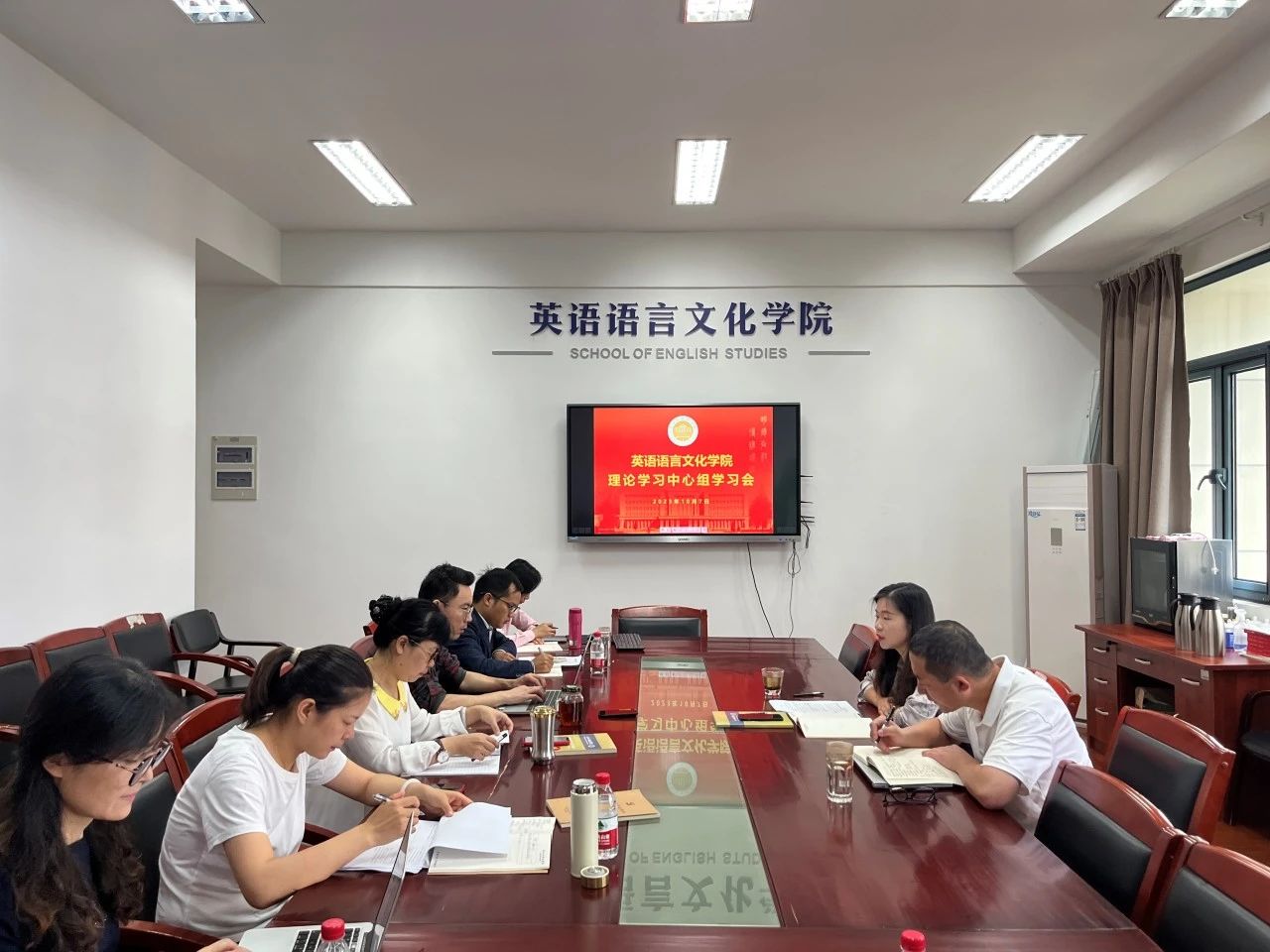 其他中心组成员结合实际工作逐一做了交流发言。教工支部书记何习尧表示要在支部内进一步学习和传达讲话精神,并谈到要合理有效的运用科技创新成果推动教学工作。英语系主任黄艳春谈到要以干在实处、走在前列的精神推动师范专业整改,切实提高教学科研能力。商务英语系主任陆海霞从共同富裕示范区出发,谈到增强员工就业意识,提升高质量就业的思考。翻译系主任王璟围绕基层治理现代化,谈了系作为基层教学组织如何科学高效地开展工作。办公室主任朱宇娟从永葆感恩奋进之心、强化实干争先精神出发,谈到优化管理方法、强化任务落实。