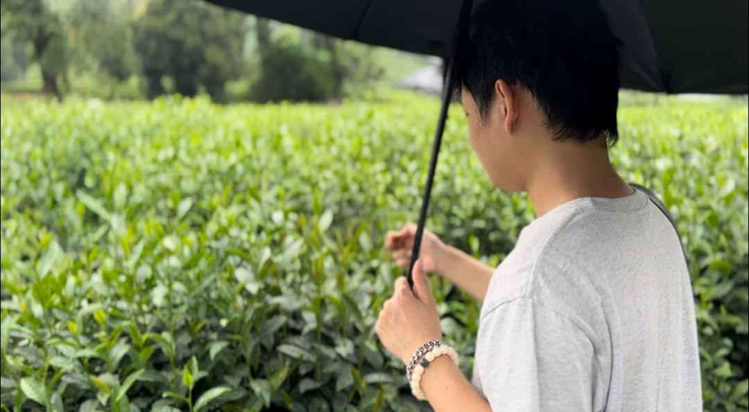 成员们首站来到雨雾缭绕的杨家牌楼,茶山与错落民房相映,其“未染商业化烟火”的本真模样,为后续茶村探访埋下伏笔。暴雨打湿茶山路,大家挤在屋檐下,凝望眼前交错的民房与茶树。“这里的茶山像被时光珍藏,没有商铺喧嚣,只剩烟火日常”23英语(师范)4班梁嘉宜深有感触,“茶文化的传承,或许本就藏在这份未被雕琢的质朴里”。这短暂的停留如同一面镜子,映照出后续探访的对比维度——当茶产业邂逅乡村振兴,将孕育怎样的生长轨迹?