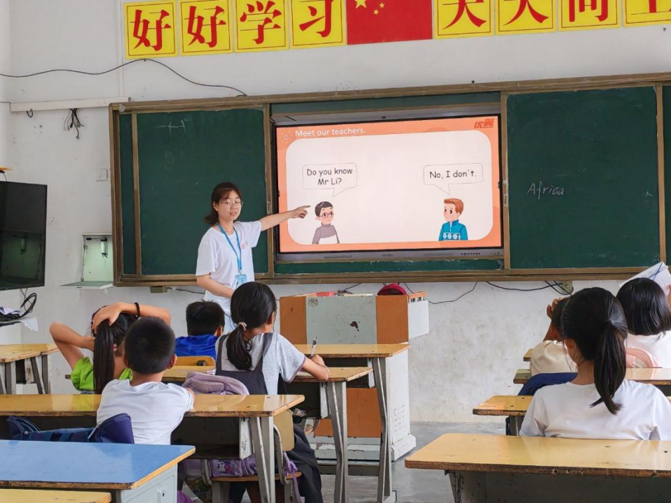 “面对山区孩子基础相对薄弱的现实,我尝试将‘趣味’融入英语课堂。当孩子们在游戏中主动蹦出‘What’s your name?’时,眼中闪烁的惊喜与跃跃欲试的光芒,便是最动人的回响。”23英师5班程欣媛的话,道出了支教的意义——三周虽短,却在孩子们心中播下了自信与兴趣的火种。