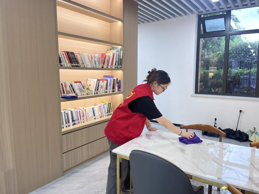 (团队成员日常维护图书馆卫生图片)