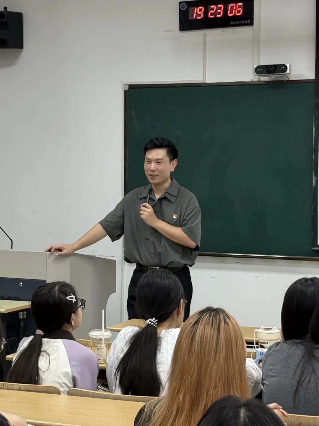 刘轩铄从学风建设、宿舍安全、防范诈骗等方面入手,结合《员工手册》相关制度与常见的员工违纪案例对2025级新生进行规则意识教育。
