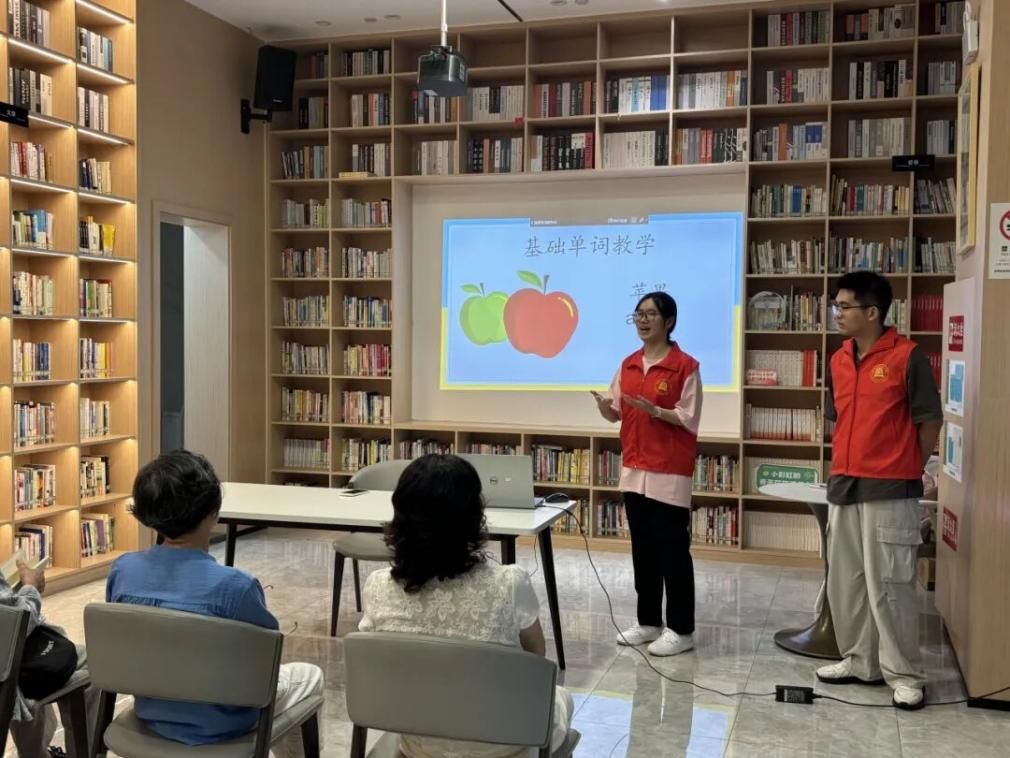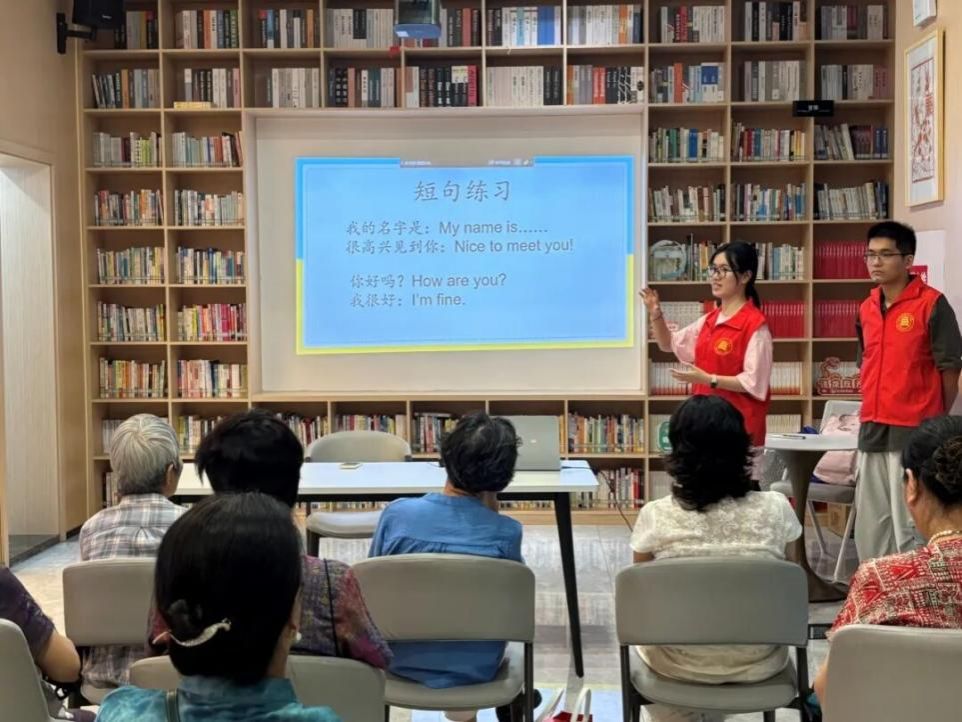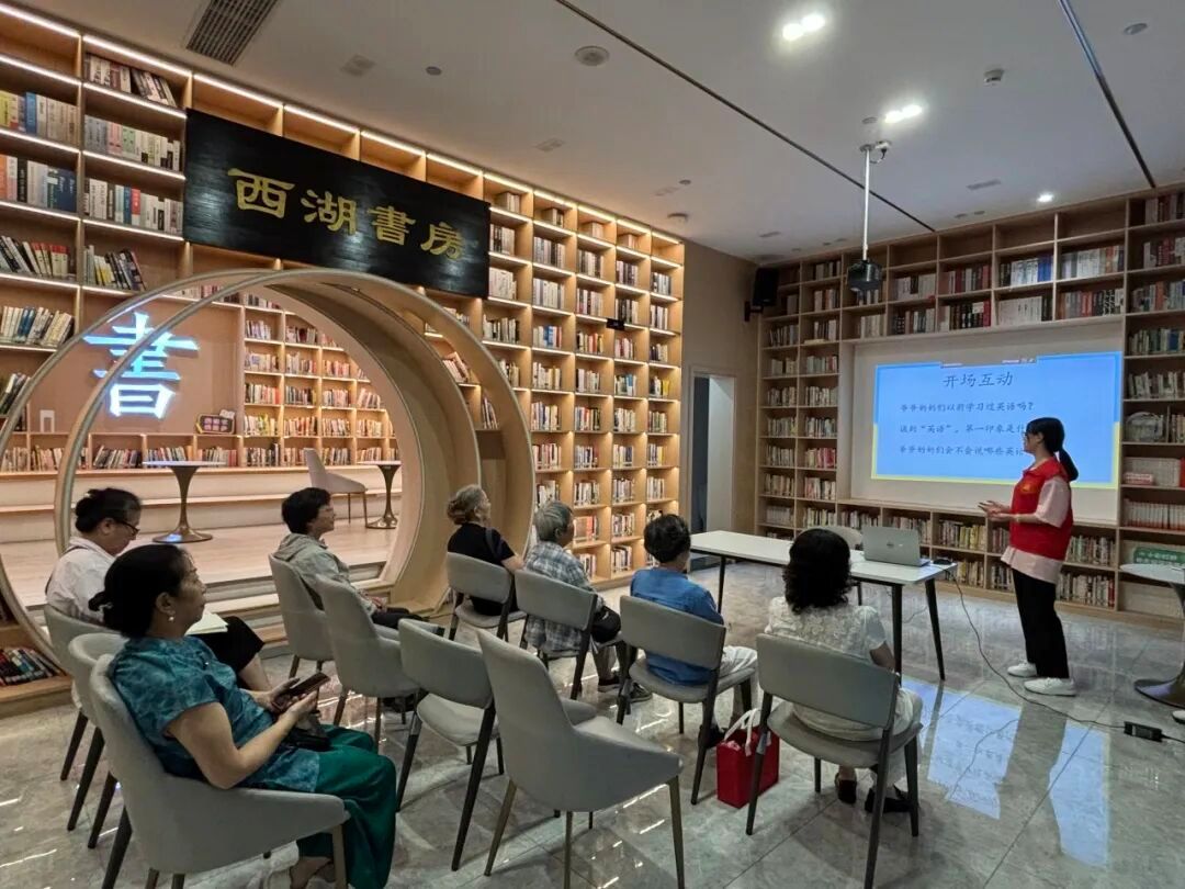 近日,“银龄乐学”来利国际旗舰厅赴西湖书房实践团走进西湖区翠苑街道保亭社区西湖书房,开展了一场别开生面的“银发英语角”主题活动。团队成员充分发挥英语专业特长,为社区老年居民带来了一堂精彩纷呈的英语启蒙课,用实际行动践行新时代青年的社会责任与担当,助力老年教育共富与精神共富。