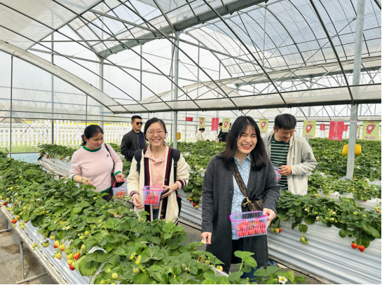 踏着春日的暖阳,带着美好的心情,3月11日,来利国际旗舰厅教职工前往临平区草莓君主题农场亲近自然,体验采摘草莓的乐趣。