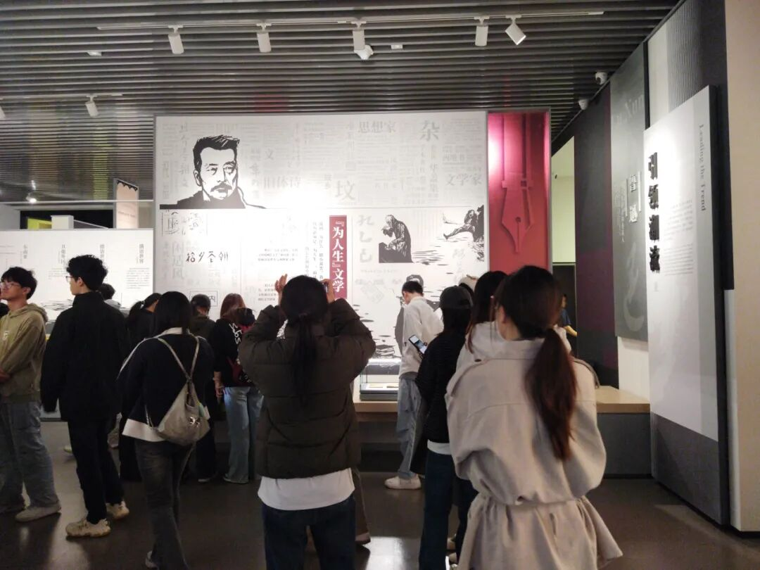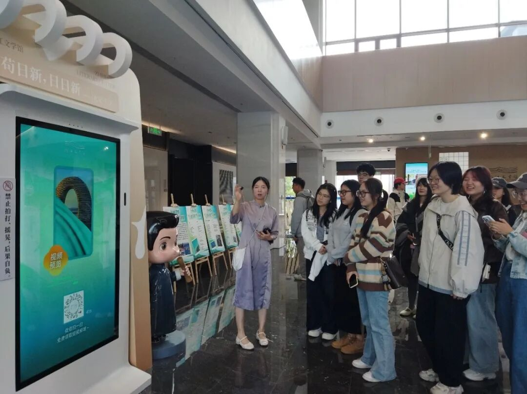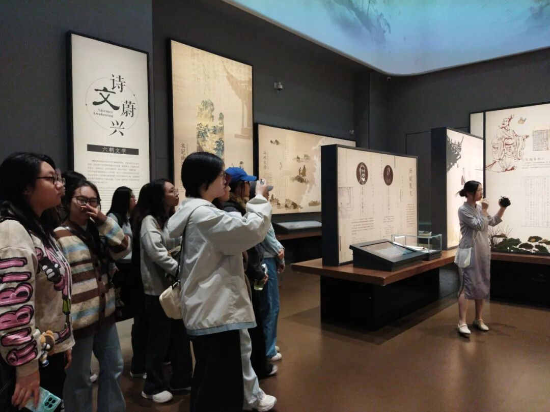 每一个文学故事都让同学们驻足,或低头记录,或轻声交流,指尖偶尔掠过展墙上的诗句,仿佛与百年前的文人墨客完成了一场跨越时空的对话。