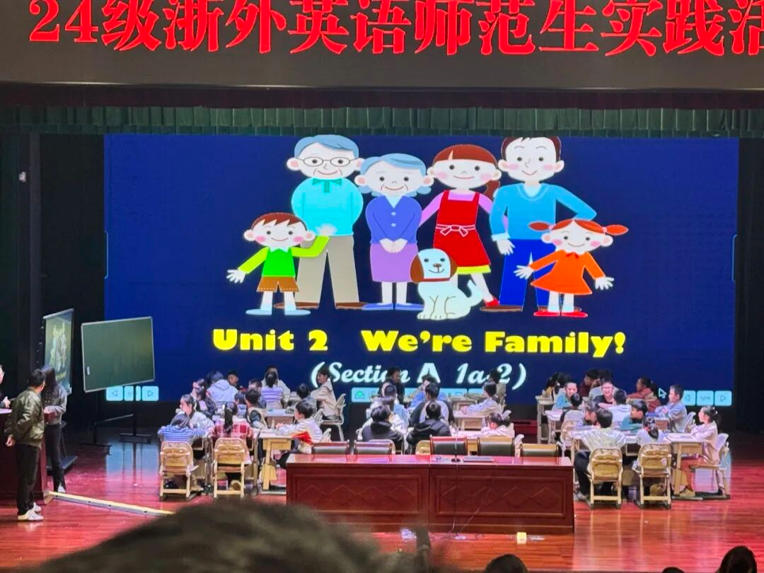 讲座后,员工观摩陈思敏的“we are family”主题英语公开课。陈思敏以图片和歌曲导入激发兴趣,通过听力与文本把握核心内容,嵌入朗读强化训练。互动环节融入读写、角色扮演及积分竞赛,注重图文结合与引导式提问,预留自主学习时间,落实教学目标并布置特色作业。其扎实功底与灵动驾驭能力让师范生深受启发。