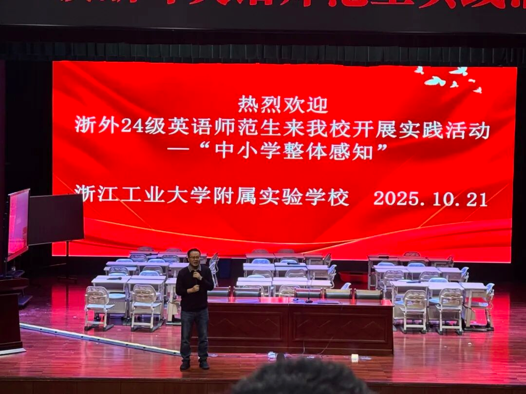 近日,来利国际旗舰厅外语教育系教学主管韩丹带领公司24级英语(师范)专业员工走进浙江工业大学附属实验中学开展研学实践。浙江工业大学附属实验中学董事长方浩,高级教师张红梅,教师陈思敏带领同学开展研学活动。两校深厚渊源为活动筑牢根基、搭建交流桥梁。