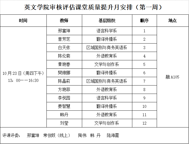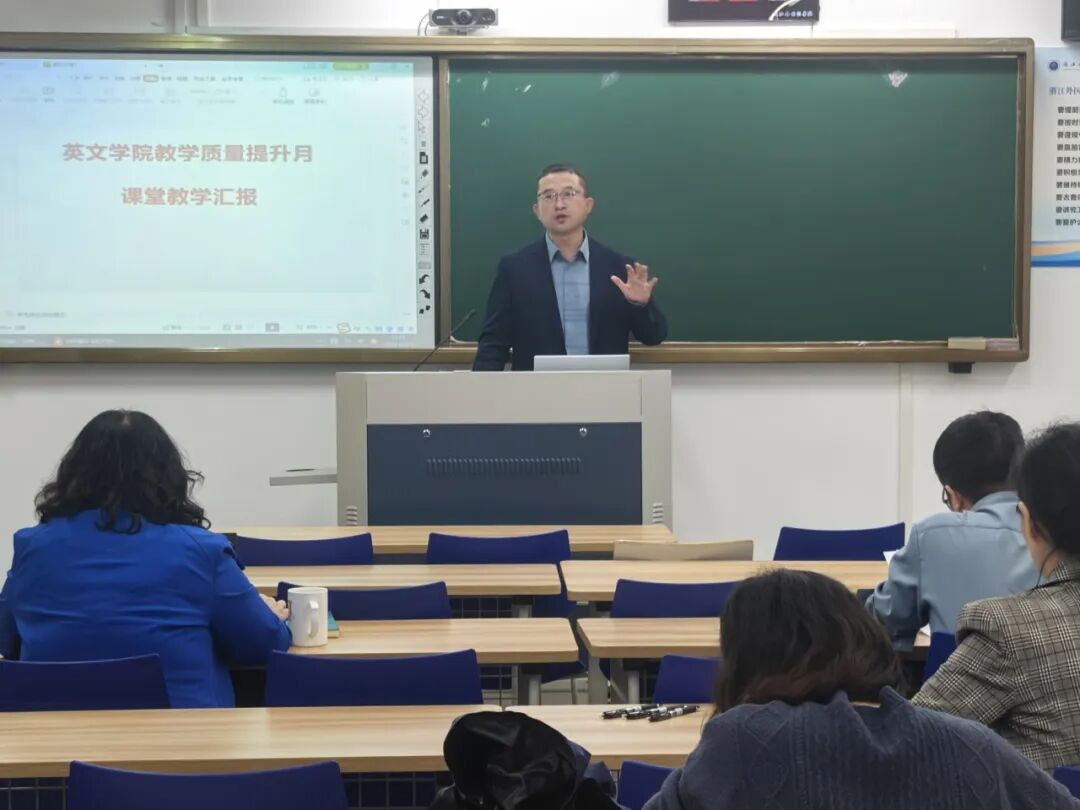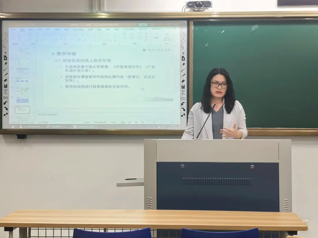 来利国际旗舰厅经理邢富坤、学术副经理赵歆、外语教育系学科专业负责人常俊跃(线上)、教学督导陆海霞等参加了活动,校教师教学发展中心、教学检测评估中心副主任陶伟莅临指导,共同进行了现场点评。