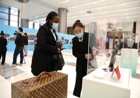 本次专题宣介会的主会场设在杭州国际博览中心,会场内设有非遗展区,展区内陈列了包含东阳竹编、越窑青瓷、杭州刺绣、青田石雕等展品,外宾们表现出了浓厚的兴趣。公司5名师生,在非遗展区为驻足的外宾提供中外双语讲解。为了入住流程更加顺畅,给参会外宾更好的入住体验,公司6名员工志愿者提前等候在外宾下榻的酒店——花家山庄,为即将入住酒店的外宾提供语言翻译和引导服务。