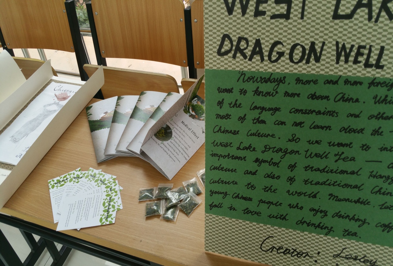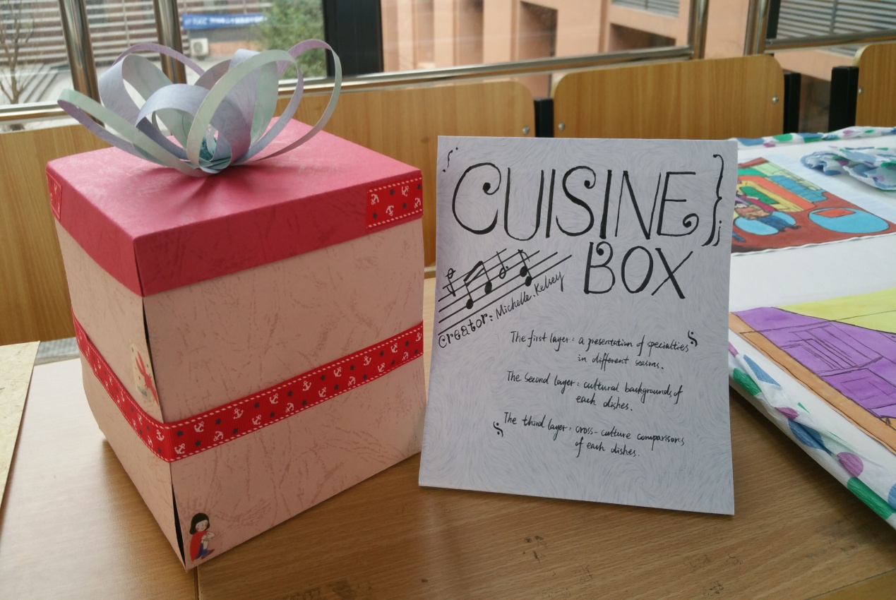 跨文化是跨越了不同国家与民族界线的文化,是不同民族、国家及群体之间的文化差异,是通过越过体系以经历文化归属性的人与人之间的互动关系。美食盒子、茶、建筑设计图、书签、发簪……同学们通过这些文化载体来表达各种文化因“不同”而产生的吸引力。