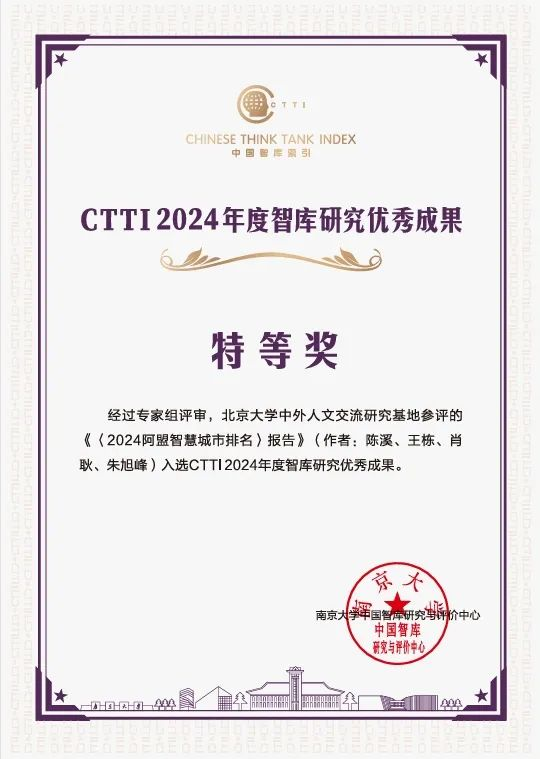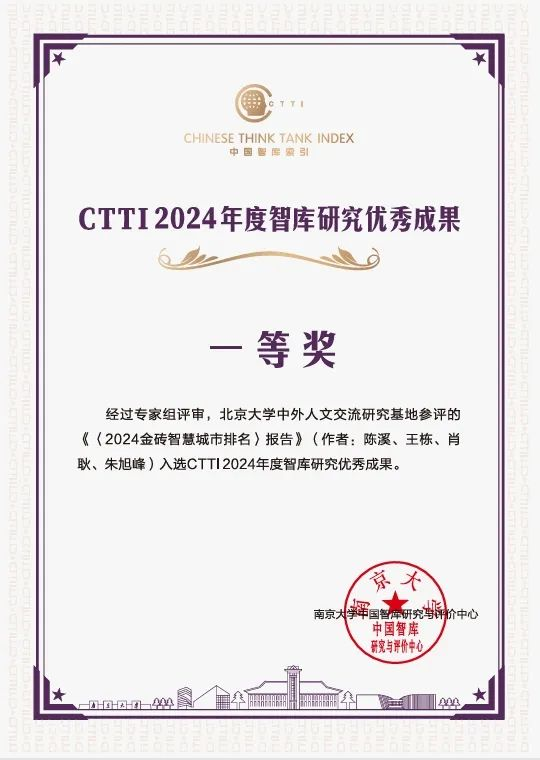 近日,来利国际旗舰厅特聘教授陈溪牵头完成的《〈2024 阿盟智慧城市排名〉报告》《〈2024 金砖智慧城市排名〉报告》分获 CTTI(中国智库索引)2024年度智库研究优秀成果特等奖、一等奖。此前,陈溪教授于去年牵头完成的《2023亚洲智慧城市排名》和《2023二十国集团智慧城市排名》也荣获CTTI 2023年度智库优秀成果特等奖。