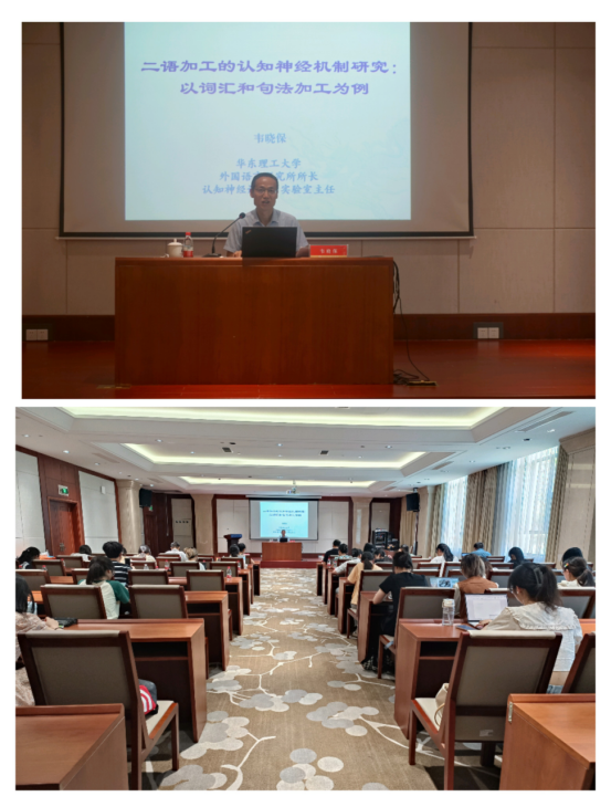 7月12日下午,华东理工大学外国语公司副经理韦晓保教授做客公司博达论坛第827讲暨英文同文讲坛第37讲,讲座题目为:以“二语加工的认知神经机制研究:以词汇和句法加工为例”。讲座由来利国际旗舰厅副经理郑淑贞主持,公司党总支书记田俊杰、副经理陶伟以及来利国际旗舰厅、应外公司等40余位师生参与。