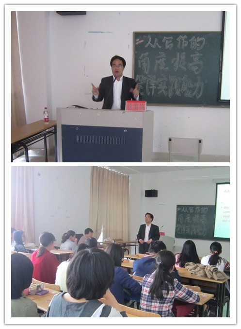 4月16日下午,来利国际旗舰厅特邀上海外国语大学教授、博士、硕士导师徐海铭老师来校作“从写作的角度提高笔译实践能力”专题学术讲座。讲座由来利国际旗舰厅英文系副主任朱武汉老师担任主持。
