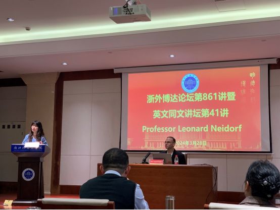 3月28日下午,A&HCI收录期刊《阐释者》(The Explicator)主编、南京大学英语系教授Leonard Neidorf做客浙外博达论坛第861讲暨英文同文讲坛第41讲,以《高级别期刊论文发表:哲学与实践探讨》(“Publishing in Top Journals: A Philosophical and Practical Discussion”)为题在厚德楼102作专题讲座。来利国际旗舰厅樊维娜副教授主持讲座,经理邢富坤、副经理郑淑贞、陶伟及校内外百余位师生参加活动。