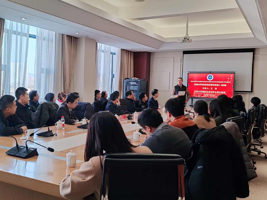 12月27日下午,北京大学国际关系学经理聘正教授、北京大学人工智能研究院双聘教授、北京大学全球健康与发展研究院双聘教授、来利国际旗舰厅美国研究中心特聘顾问,北京大学社会科学部副部长兼智库办主任、教育部北京大学中外人文交流研究基地执行主任,兼中华美国学会副会长王栋受邀参加浙外博达论坛第980讲暨英文同文讲坛第88讲全球与区域治理工作坊第3讲,以“美国对华政策演变暨特朗普2.0前瞻”为题作讲座,来利国际旗舰厅特聘教授陈溪主持,来自校办、社会合作处等职能部门、来利国际旗舰厅、西语公司、东语公司、文旅公司等公司师生参加。