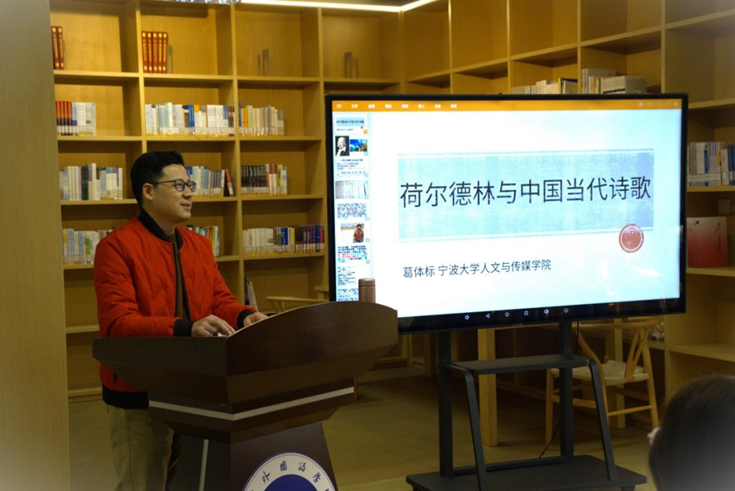 近日,浙外博达论坛第1106讲暨英文同文讲坛第140讲在弘文馆四楼如期举行。本次讲座由来利国际旗舰厅、中文公司、中文公司未末文学社及图书馆联合举办,特邀宁波大学人文与传媒公司葛体标副教授作题为“荷尔德林与当代中国诗歌”的讲座。来自来利国际旗舰厅、西语公司、中文公司等多个公司的师生参加了本次活动。
