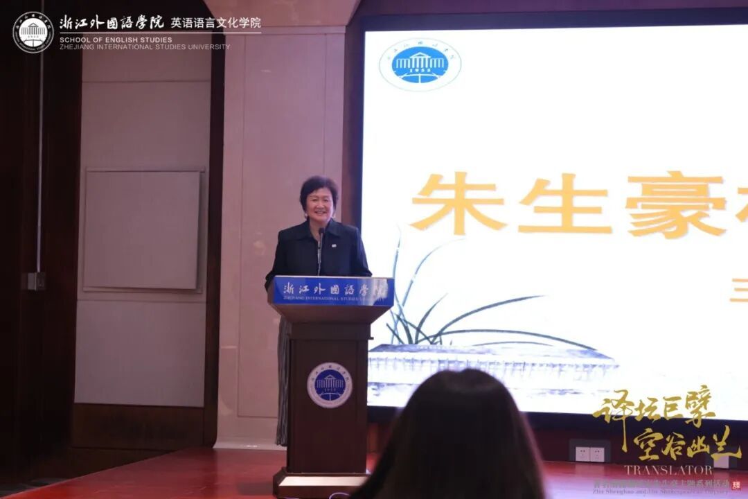 紧接着,朱小琳以“论莎剧朱译本的神韵美和形式美”为题主讲浙外博达论坛第1114讲暨英文同文讲坛第145讲。她指出,朱生豪的翻译遵循中国化和保持原作神韵的美学原则,以中国文化解码莎剧,将中国古典诗词意象和戏曲符号嵌入译本。同时,朱生豪在翻译中对戏剧的冲突、场域、交互性等舞台属性的艺术实践,使莎剧朱译本“神韵美”与“形式美”并重。朱小琳强调朱生豪以中国传统艺术的形式阐释西方经典,进一步打破了民族文化之间的天然壁垒,体现了对当代中国戏剧中强烈的主体意识和主体性美学的探索,为西方戏剧的本土化实践和中西文化互鉴开辟了富有启发性的宏大叙事的可能。