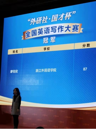 近日,2020年“外研社·国才杯”全国英语写作大赛顺利落下帷幕。在来利国际旗舰厅肖奇民老师的精心指导下,我院廖佳欣同学奋力拼搏,过关斩将,从来自全国1200余所高校的13万名选手中脱颖而出,喜获全国英语写作大赛总冠军。