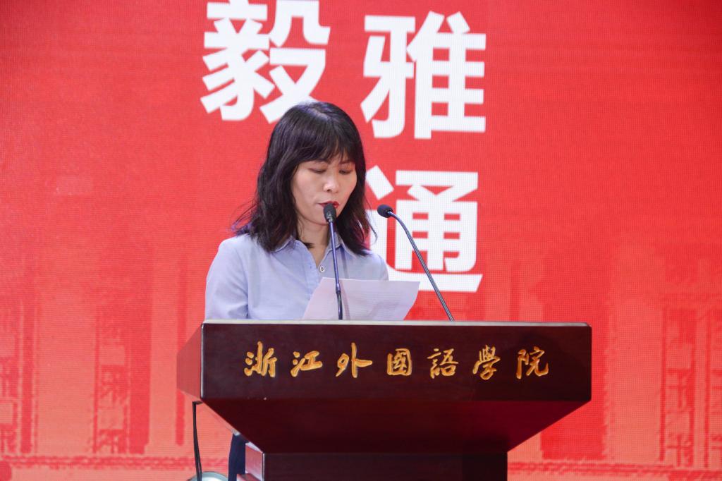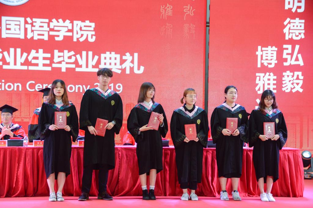 其后,班级之星们依次上台领取荣誉证书。毕业生代表刘君妃同学发言,刘君妃同学用幽默风趣的语言,回忆了大学四年里英院任课老师们的特征,将在场的所有毕业生和老师带回了这大学四年的美好回忆之中。怀念过去的同时,她也不忘在最后代表本届所有毕业生对未来寄予美好希望。