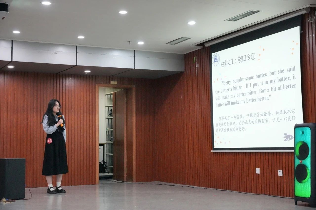 选手现场抽取单词和绕口令进行认读。