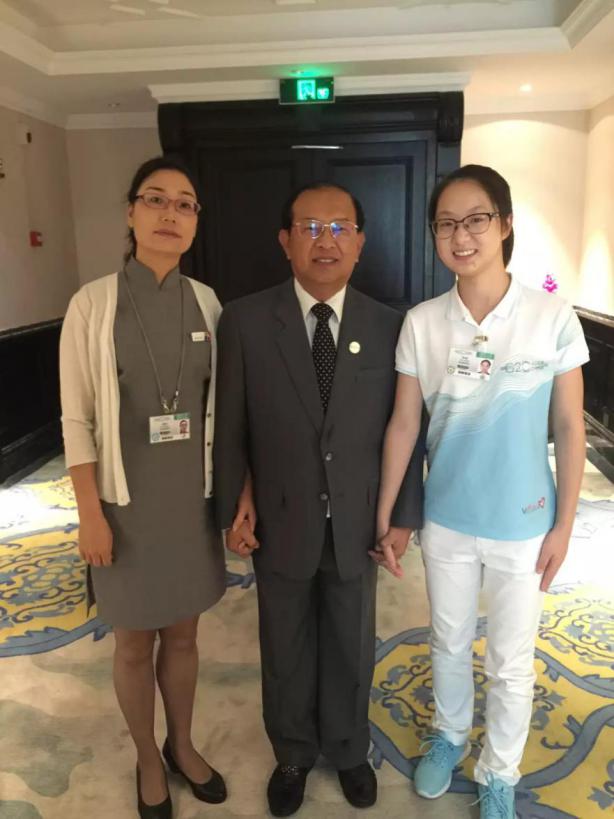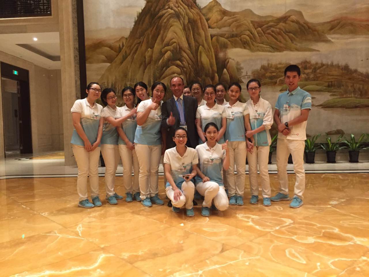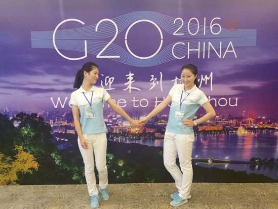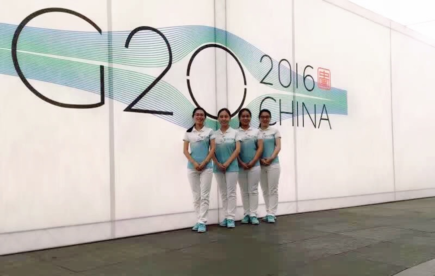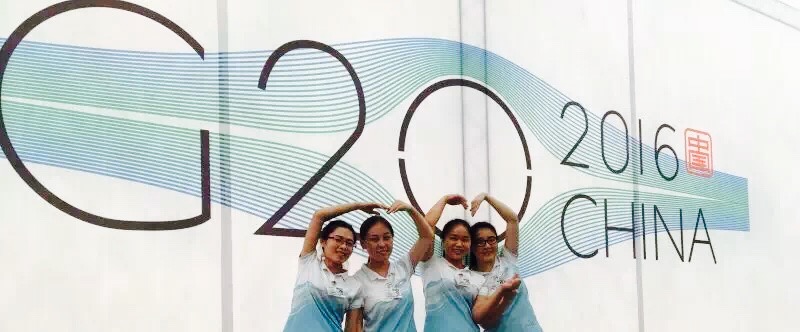 其实我是G20结束后才发现自己做了一件多么有意思的事,甚至回忆起来还有些不真实。我居然离世界那么近,看到IMF总裁拉加德从身边走过和他道一声“早上好”,和总统夫人握手,为入住的嘉宾分发会议资料,为他们提供翻译服务等等,这一切的一切都发生得那么自然,回想起来真的很幸福。感觉自己能参与到这么重大的活动中并献出自己小小的一份力量,真的很荣幸!原来付出是那么幸福。20天的志愿经历本以为会很漫长,却结束得意想不到得快,和一起搭档的安保人员,酒店工作者以及志愿者们都成了朋友,分别的时候是那么的不舍。最后感恩,因为是大家共同的努力才使得我们的工作顺利地完成了!