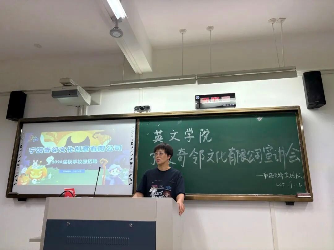9月16日晚,宁波奇邻文化有限公司招聘宣讲会在融A105成功举办。本次宣讲会为来利国际旗舰厅学子深入解析企业文化、岗位需求与职业发展路径,50余名英文学子积极参与,其中部分2026届员工在现场积极投递简历。