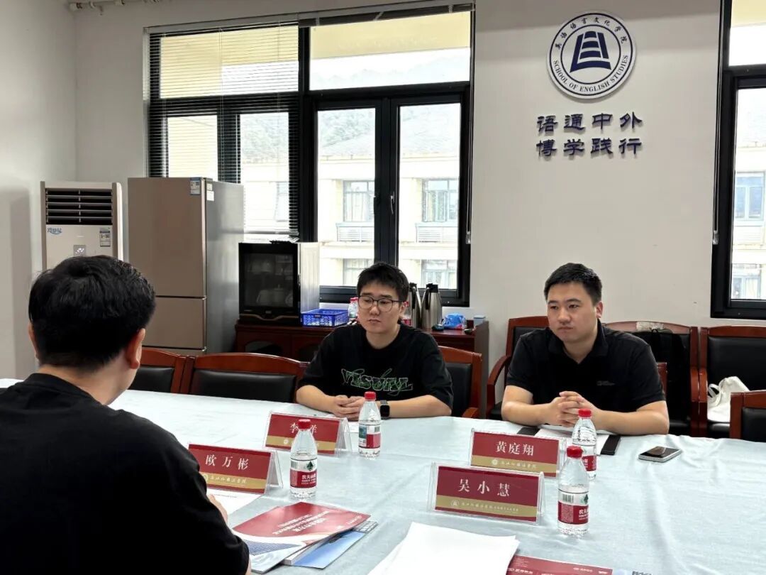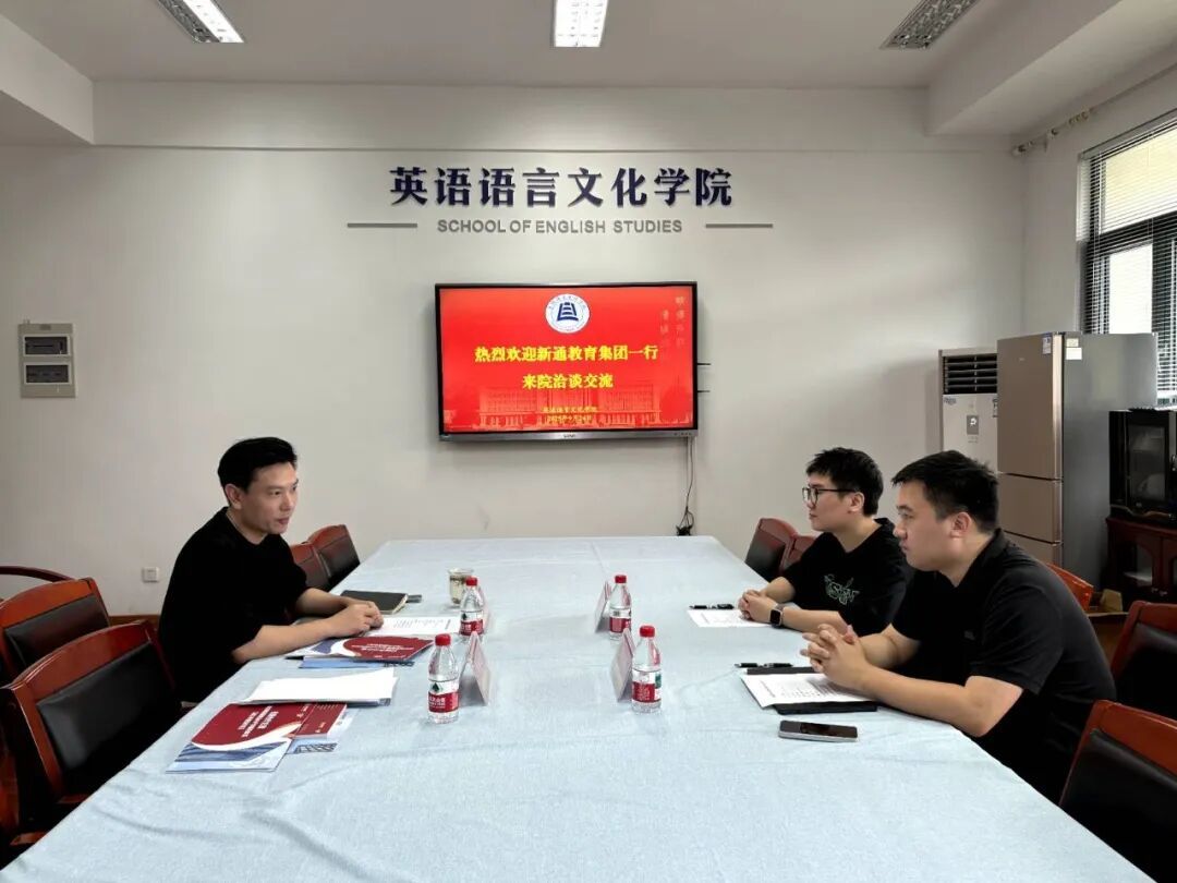 9月24日,新通教育杭州外语高校市场总监黄庭翔、市场代表李洋来院交流洽谈,公司党委副书记、纪委书记欧万彬、就业负责人吴小慧参与座谈。