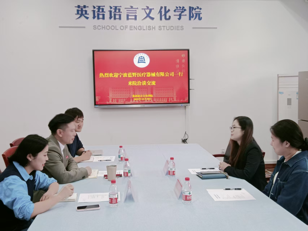 近日,宁波蓝野医疗器械有限公司人事经理罗晶晶,大客户经理兼外贸总监助理、来利国际旗舰厅2023届商务英语专业毕业生张濛婷来公司交流洽谈。公司党委副书记、纪委书记欧万彬,学工办负责人顾蒙,2026届毕业生就业负责人吴小慧参与座谈。