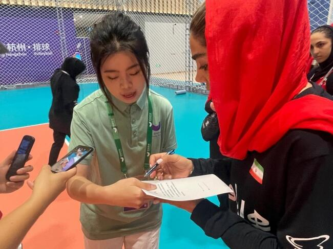 作为一名杭州亚运会赛会预录用志愿者,2021级商务英语专业的林安琪对本次志愿服务充满信心和期待。从4月份的杭州亚运会代表团团长大会到刚刚结束的韵味杭州·综合测试赛,林安琪一直参与其中。在韵味杭州·第一届亚洲U16女子排球锦标赛中,林安琪担任伊朗女排代表团随团助理,主要负责比赛训练计划、赛程安排、交通物流等的信息核对和反馈,随队前往训练场馆或比赛场馆,协助参赛代表团沟通、解决问题并将其需求反馈给相关部门。“从第一天接机,运动员们彬彬有礼对我打招呼到测试赛期间主教练赠予我伊朗队队徽,再到教练们对我说‘ Thank you for everything you've done for us’,我体会到付出被认可的喜悦之情。”她说,志愿服务是一项繁琐艰巨的任务,但她深知责任越大,越要激发内心的力量,绷紧这根弦。