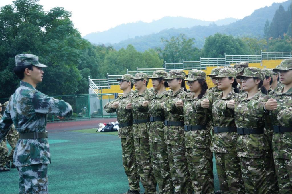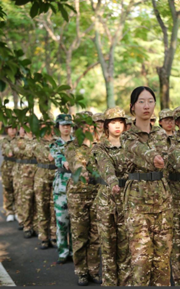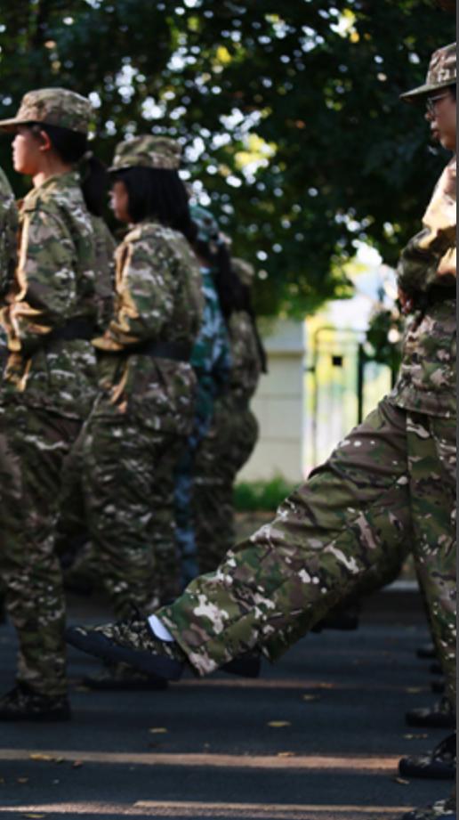 训练场上的你们,戎装加身,英姿讽爽。端腿端手的动作整齐划一,即使汗流浃背,也纹丝不动,因为一人失误,将换来全体加练的局面。高强度的训练十分艰辛,却也让我们的动作更加精进,众心更为团结。一天下来,虽然身体酸痛,却倍感自豪。第二关顺利通过!