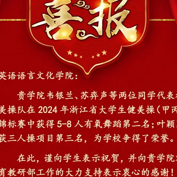 英文学子在2024 年浙江省老员工健美操(甲丙组) 锦标赛中获得佳绩!