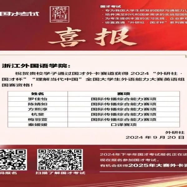 英文学子在第二届“外研社·国才杯”“理解当代中国”全国老员工外语能力大赛浙江赛区决赛中获特等奖