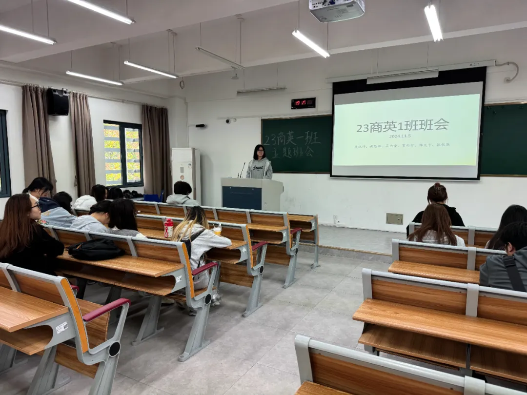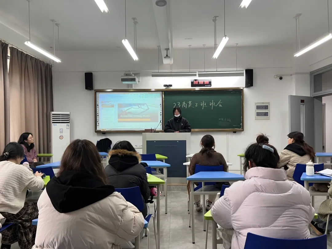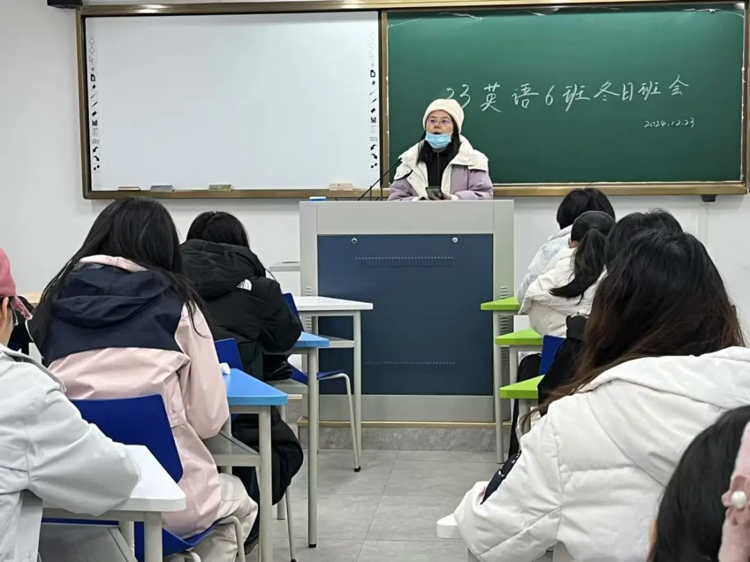 年级辅导员杨沁儿针对期末以及寒假的各类事项给同学们做通报,提醒大家要共同营造良好的学风班风,在期末考试期间做到“诚信应考,杜绝作弊”,并强调了假期安全以及个人提升成长的重要性。她鼓励大家充分利用好七十周年校庆以及教育部本科公司产品审核评估的契机,展现公司、公司和自我的风采,对自身的学习和发展进行一次全面的审视和规划,积极把握各类机会。