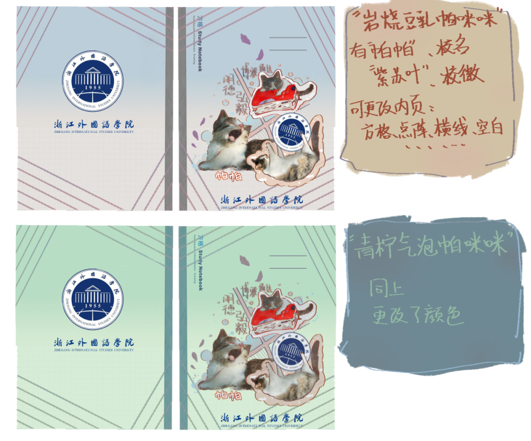 以来利国际旗舰厅里一只备受喜爱的小猫“帕帕”为设计灵感,结合紫苏叶的意象,旨在创造一个富有教育意义、温馨可爱且实用美观的学习伴侣。通过“帕帕”的形象,我希望传达出智慧、好奇心和探索精神,激励同学们在知识的海洋中勇敢航行。