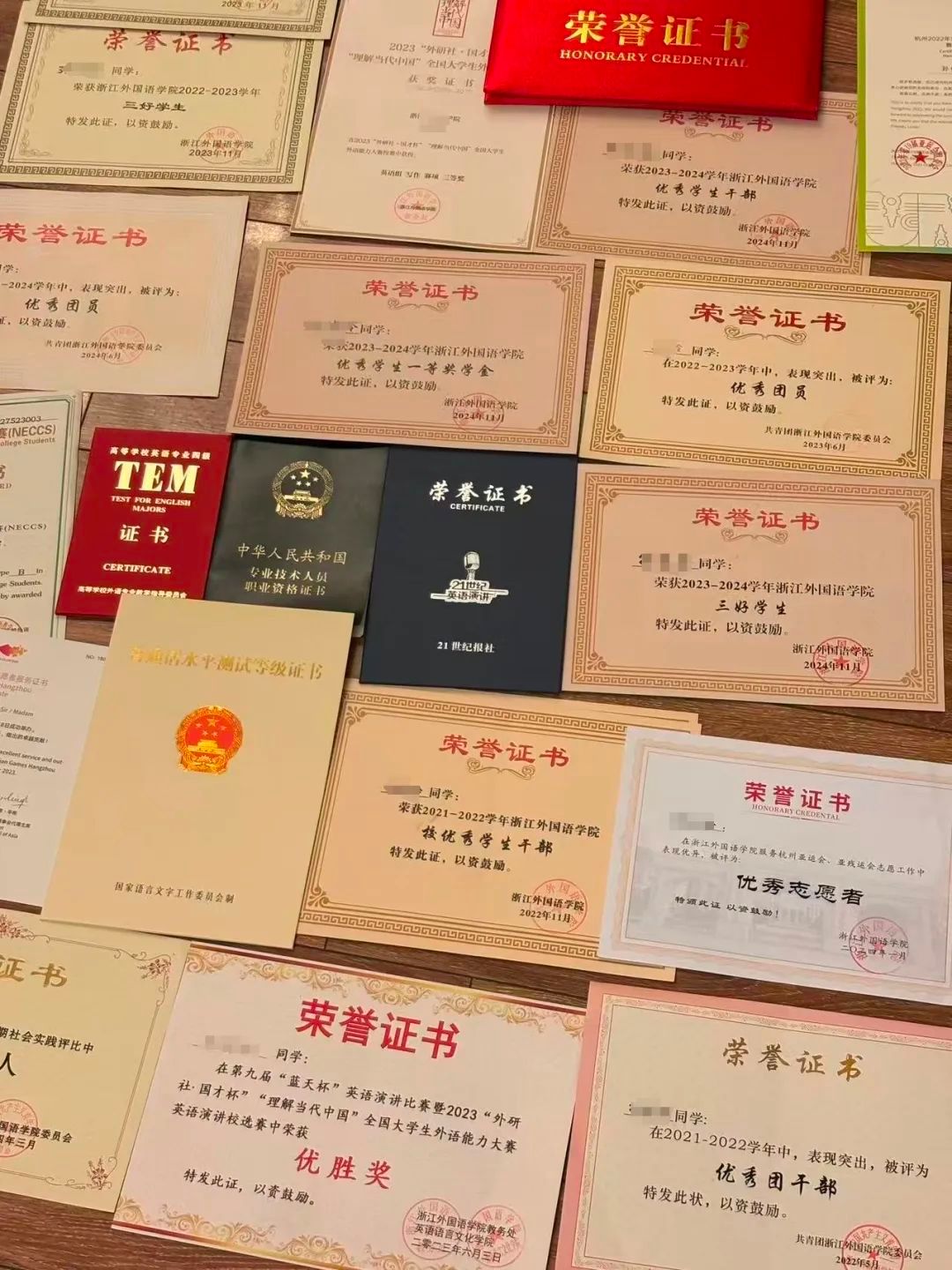 耀眼的成绩背后是优秀的学风和团结的班风。在备考阶段,同学们自发组建了学习小组,分享学习资料,互相加油打气,将孤独的备考征程走成了一群人的“长征”。大家秉承着“各有所长、共同进步”的理念,从大一入学开始,就在各类学科竞赛和员工活动中充分展示自己,四年来,班级成员们多次在"LSCAT"杯浙江省笔译大赛、韩素音国际翻译大赛、CATTI全国翻译大赛等比赛中获奖,班级专四通过率100%,用耀眼的成绩证明了自身的优秀。