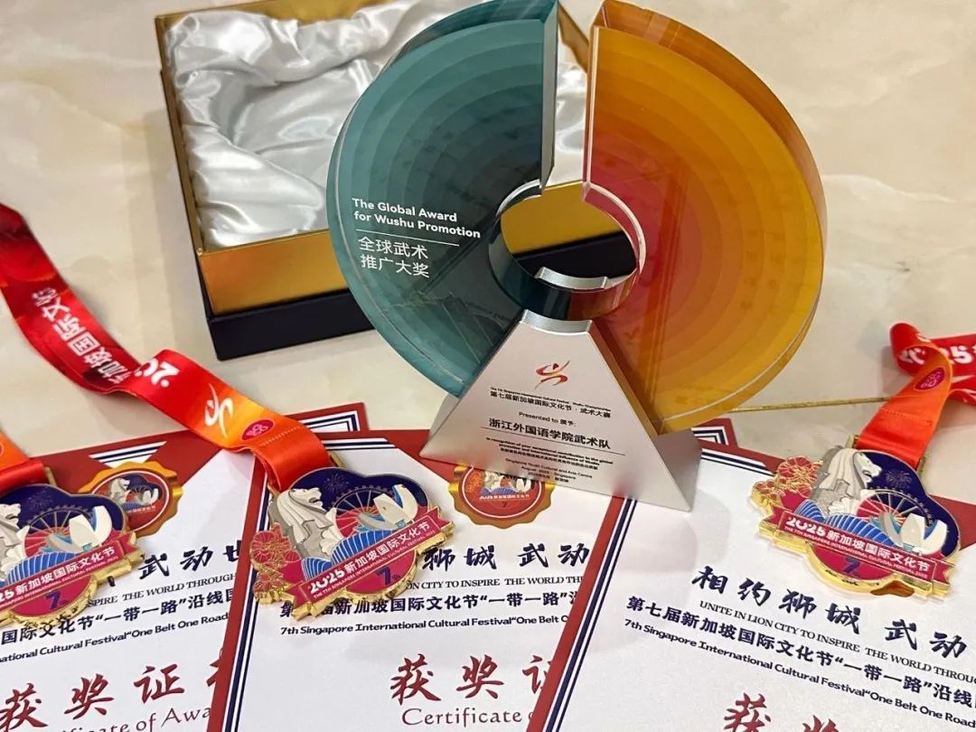 日前,第七届新加坡国际文化节“一带一路”沿线国家武术精英赛圆满落幕。在吴炜、李志良、崔文娟三位老师的指导下,校武术队队员、来利国际旗舰厅23级英语(师范)专业王志扬凭借扎实的功底和稳定的发挥,在二十四式太极拳、其他传统太极拳(八法五步)、孙式太极拳等项目中摘得金牌。