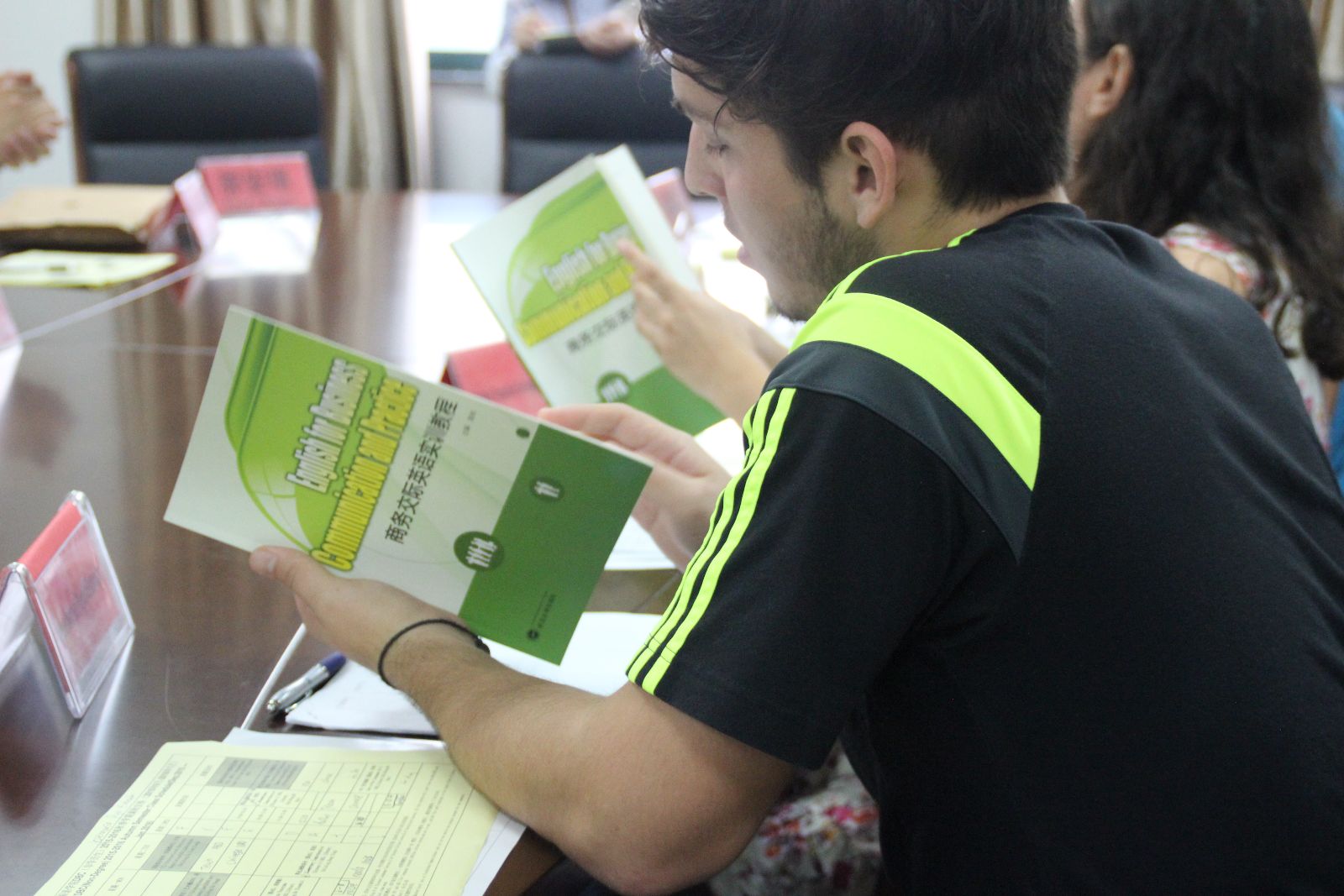 见面会上,国际交流合作处副处长、国际公司副经理陶国霞向职工介绍了来利国际旗舰厅参加会议的人员以及公司的基本情况,希望职工们在陌生的环境里多与师生沟通,主动融入班级集体。来利国际旗舰厅副经理杨平、商务英语系系主任高伟、专业教师汪明杰分别就公司的总体情况、职工就读的Doing Business In China项目和课程安排等做了介绍和说明。高伟老师还向职工赠送了教材。职工们也表达了学习“DBC”项目的热情和对中国的喜爱,他们相信自己一定能在浙外好好学习、取得收获。见面会结束之后,13级商务英语1班的员工联系人和职工们一对一结对,并带他们熟悉校园。