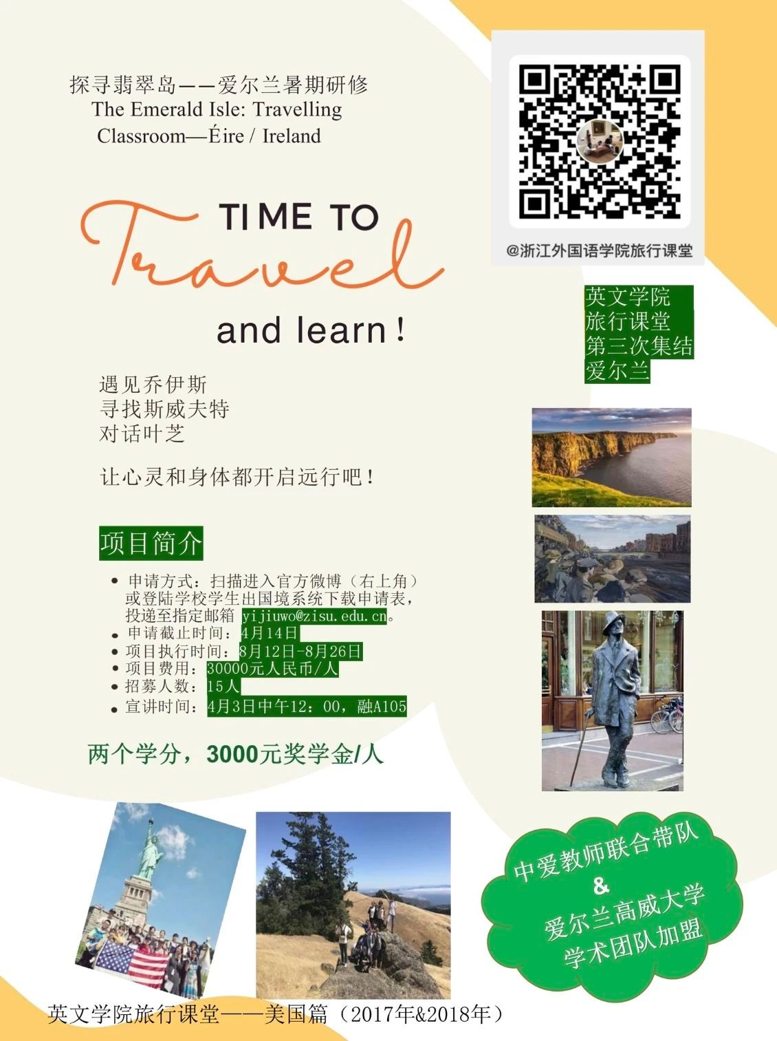 这个夏天,来利国际旗舰厅的旅行课堂即将再度开启啦!完成了两次探索美国的游学,这次我们将前往素有翡翠岛之称的爱尔兰。爱尔兰孕育了诸多伟大的文学家,艺术家,是来利国际旗舰厅外籍专家James O'Donnell的家乡,他将和中方教师一起带领大家领略爱尔兰的人文,历史与自然风貌。