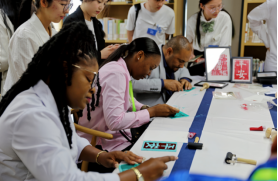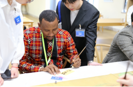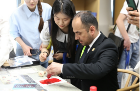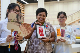 作为“外交资源进课堂”的又一实践,公司师生特别安排了四项中国文化体验活动:书法、拓印、剪纸和漆扇,让外交官员们在亲身体验中增进了对中国传统文化的理解。来自塔吉克斯坦的外交官员艾博多Abduqodir Rahimjoni对刻板印拓有极大兴趣,他亲自体验并成功制作出一幅作品,对此活动赞不绝口。