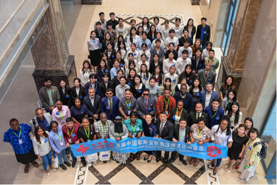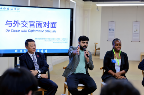 此外,外交官员们还就文化交流与合作等话题与同学进行了深入探讨,强调文化交流在推动国际理解与合作中的重要作用。他们希望通过研修班加强与中国师生之间的联系和合作,共同推动国际文化交流的发展。此次面对面采访环节还为外交官员们提供了一个展示自己国家和文化风采的平台。各国外交官员激情高涨,纷纷介绍自己国家的语言、音乐、舞蹈,现场气氛达到了高潮。