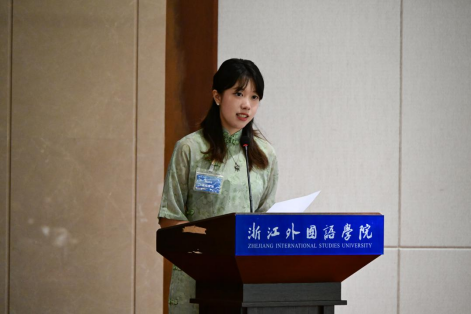 22级口译班的员工徐屹紫涵代表员工发言。她回顾了中国与八个发展中国家的友好外交往来,强调了中国与各国之间保持友好合作关系的重要性,感谢了公司和公司给予员工们更多了解世界的机会,使他们更能接触并欣赏到不同的文化。