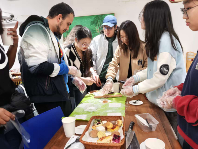 本次活动,令我深切体会到美食作为文化载体的独特价值。在一起包裹红豆泥、撒黄豆粉的过程中,不仅完成了传统小吃的技艺传递,更构建起跨越国界的文化对话桥梁。当不同文化背景的参与者认真聆听“驴打滚”的命名渊源与制作工艺并产生浓厚兴趣时,我意识到这种具身化的文化体验远比理论说教更能促进文明互鉴。这场以食物为媒介的交际活动印证了:文化共情往往诞生于共同创造的时刻。指尖流转的黄豆粉与唇齿间的香甜,恰似跨文化理解最生动的注脚,让我们在协作中自然领悟了“和而不同”的深刻内涵。