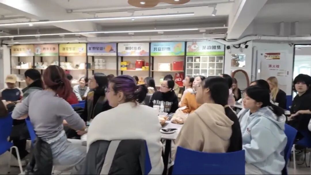 体验环节一开始,现场立刻热闹起来。同学们自然地分成几簇围在桌边,双手按上糯米面团,揉搓间反复翻转。用指尖捏取少量黄豆粉撒在案板上,将揉好的面团滚过粉末,粉粒均匀地裹在表面。几位职工跟着示范动作,认真地捏面团,再慢慢滚动裹粉,一步步复刻操作流程。大家边做边交流,不时分享技巧,欢声笑语中,文化的隔阂悄然消散。