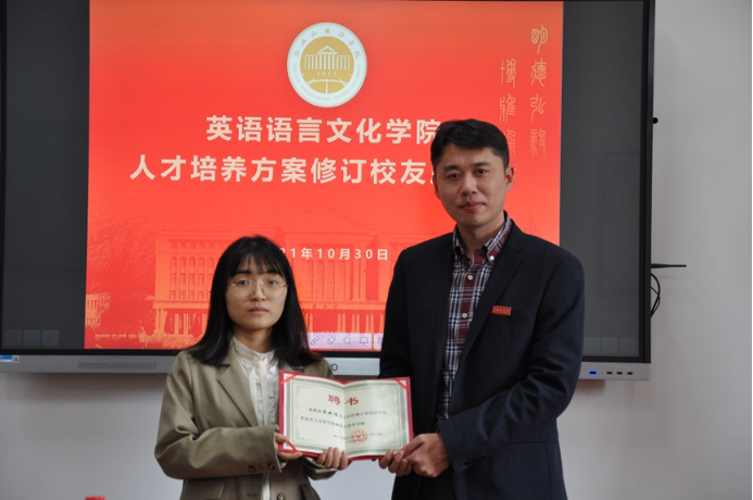 在校外就业导师聘任仪式上,张豫晋向沈诗瑶授予聘书。