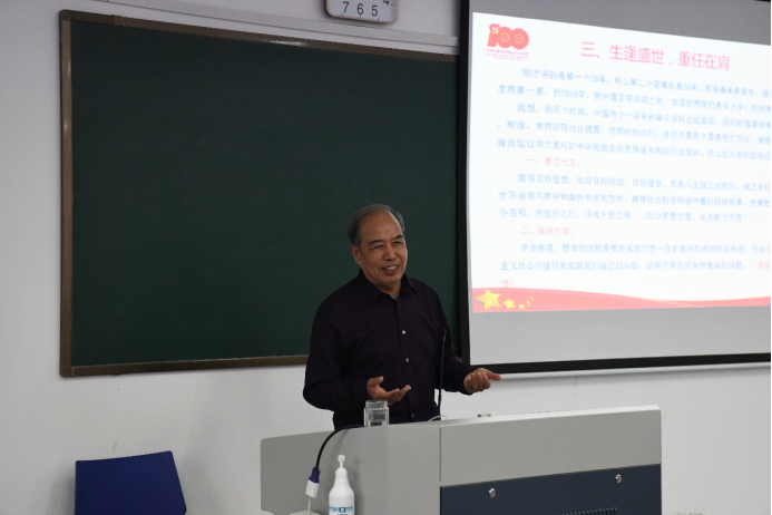 潘作仁从多舛的亲身经历出发,让同学们明白了受教育机会的来之不易。他表示,个人的命运与国家的命运紧密相连、休戚相关。作为浙江省红船精神宣讲员,他不忘使命,向同学们介绍了党史学习教育为何学、学什么、怎么学。同时,他也向同学们提出了要朝立大志、明大德、成大才、担大任、树榜样的方向努力的要求,真正做到“生逢其时,重任在肩”。