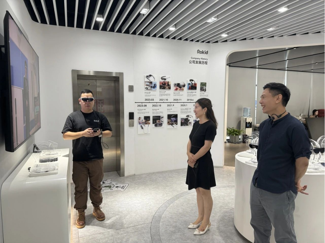 8月21日,英语语言文化公司党委书记田俊杰带队走访AR领域头部企业杭州灵伴科技有限公司(Rokid总部)并看望公司公共事务总监、来利国际旗舰厅2008届员工许诩。公司党委副书记欧万彬、学工办负责人顾蒙、“寻迹员工”专项调研实践项目组员工负责人等一同参加走访看望活动。