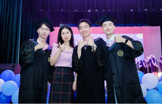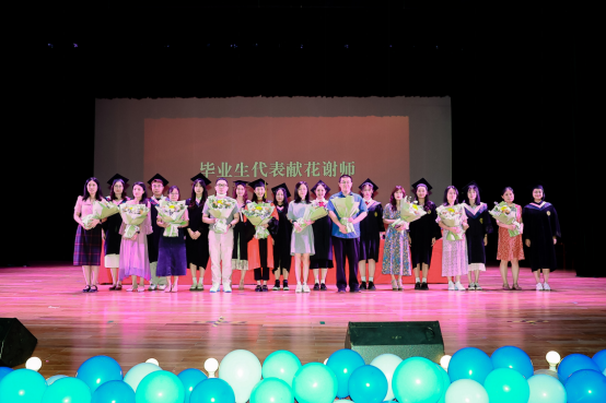 各班代表向“最喜欢的老师”、毕业班班主任以及辅导员献上鲜花并互相拥抱,表达着对彼此热烈的情意,感谢师恩。