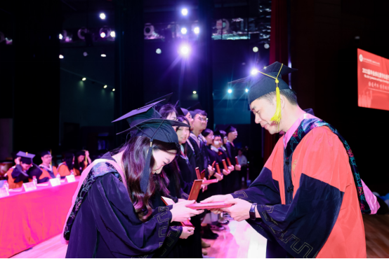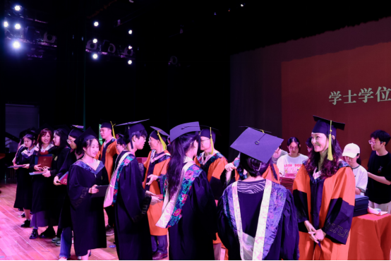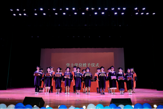 在大家的期待和注视中,由公司领导班子成员、各系主任、教授代表为大家逐一拨穗并颁发学业证书,为毕业生的本科生涯画上圆满句号。