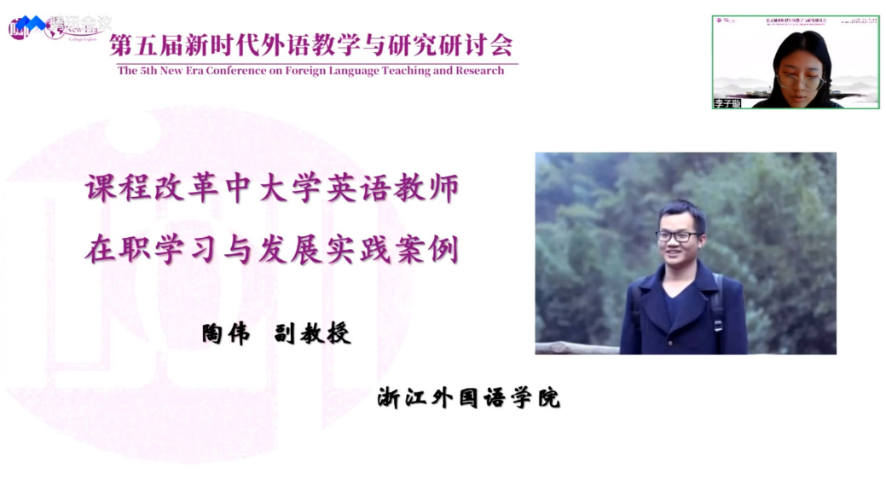 陶伟报告的题目是:课程改革中大学英语教师在职学习与发展实践案例。他指出,蓬勃发展的课程改革涌现为五个新常态:学分削减、思政贯通、技术赋能、实践延展和学科破壁。这为大学英语教师带来很多新挑战,而这些新挑战也成为他们专业发展的新机遇。结合《大学英语教学指南》,他分享了公司一位教师的个体能动实践和行动研究团队的群体共同探索两个案例,并从生物生态学视角对这两个案例进行了分析,呈现了公司教师有效发挥主体能动性和公司积极创设优质教师发展环境的生动实践,为其他公司教师的专业发展提供了启示。