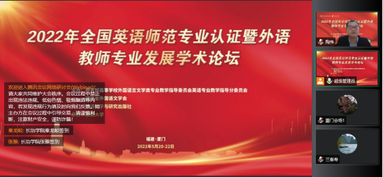 5月21日,由教育部高等公司外国语言文学类专业教学指导委员会英语专业教学指导分委员会、福建省外国语文学会和外语教学与研究出版社联合主办,集美大学承办的“2022年全国英语师范专业认证暨外语教师专业发展学术论坛”在福建厦门举行,陶伟副经理受邀在线参会并在主旨报告环节交流发言,根据会议主题,重点分享了英语(师范)专业认证自评报告中“毕业要求”“质量保障”“团队队伍”和“支持条件”四个标准的内容撰写经验。与会专家对公司英语(师范)专业在“毕业要求达成度”和“职前职后一体化”等方面的做法给予了充分肯定。